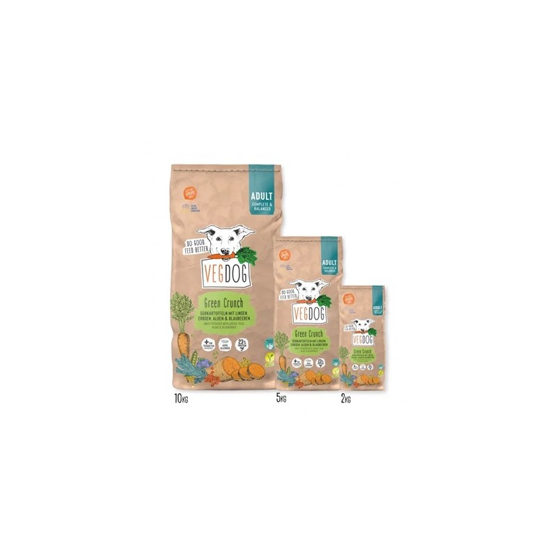 VEGDOG GREEN CRUNCH is not suitable for puppies and lactating bitches, as they have an increased need for nutrients and energy.