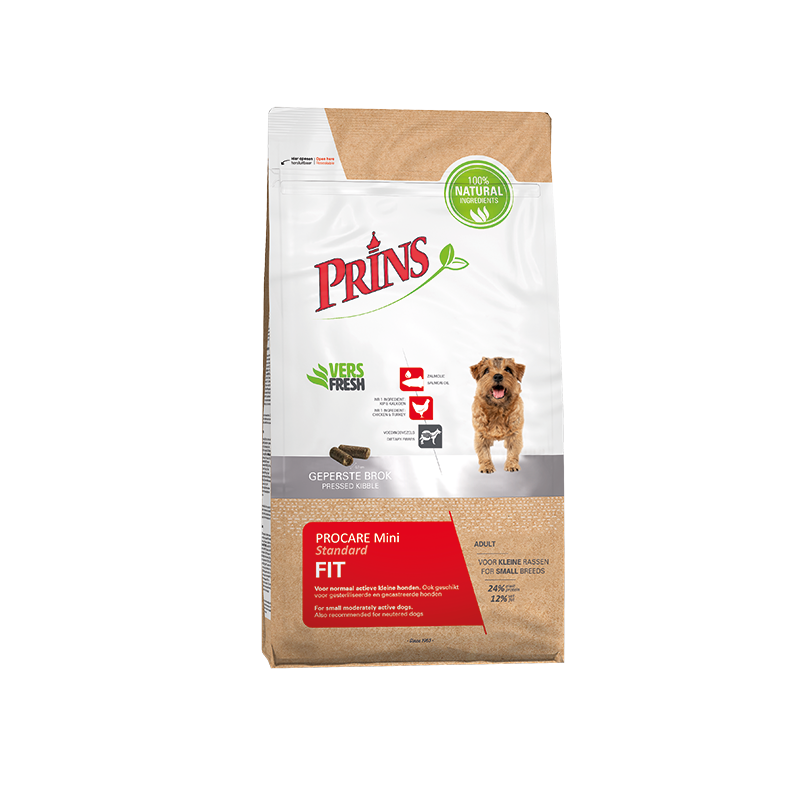 FOR ADULT DOGSProCare Standard Fit is a complete pressed food for adult dogs up to around 8 years of age which are averagely active. The adjusted energy content helps keep your dog in optimal condition. Carefully selected ingredients contribute to a healthy skin and shiny coat, optimal digestion and a well-balanced intestinal flora.