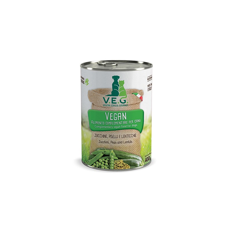Composition: products and by-products from the transformation of fresh fruit and vegetables (zucchini 23%, peas 23%), lentils (15%).
