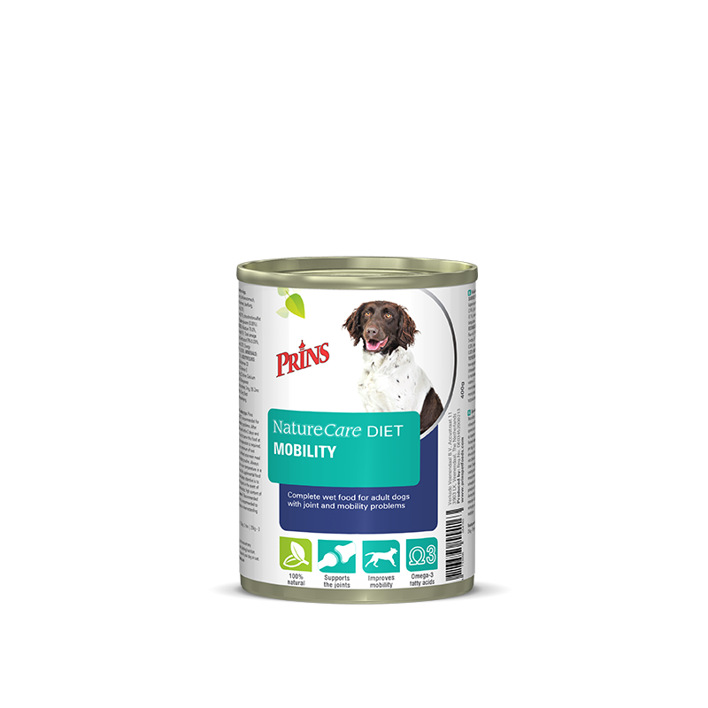 NatureCare Veterinary Diet Dog Mobility is a (natural) dietetic wet food especially for adult dogs with joint and mobility problems. This complete dietetic food has been developed in collaboration with veterinarians and contains nutrients which positively influence your dog's joints and mobility.