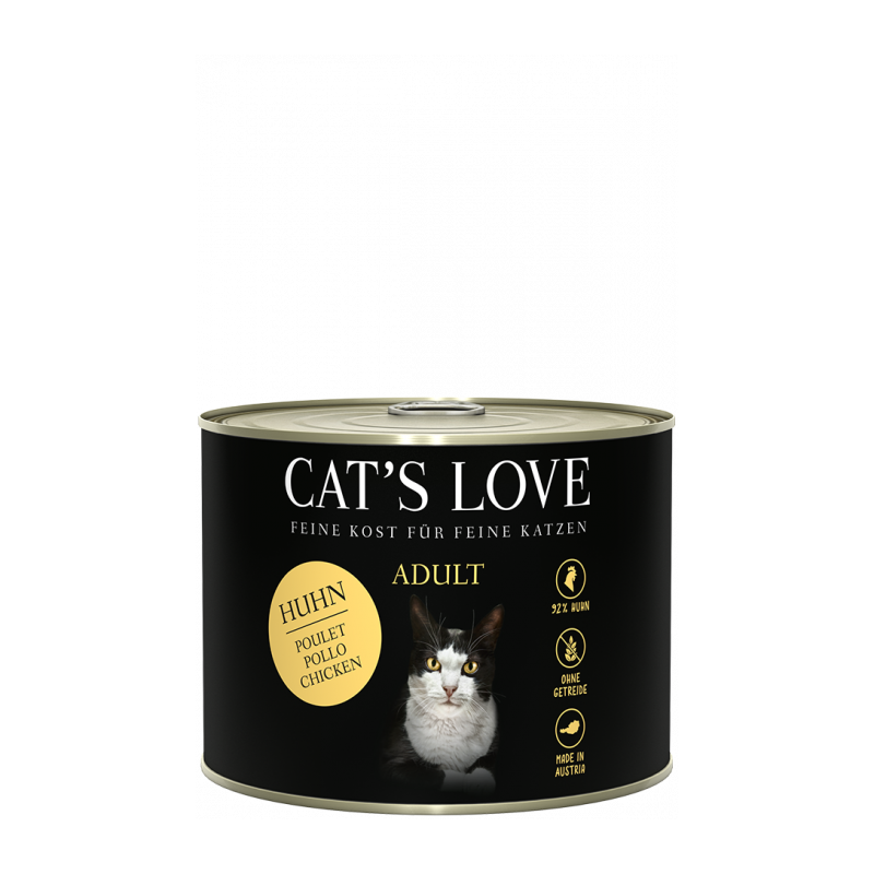 Cat's Love umido al pollo in gelatina naturale con ortica e olio di lino.