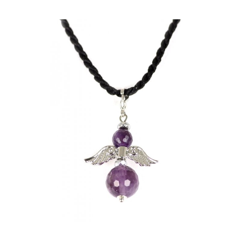 Simpatico Ciondolo di Ametista Naturale a forma di Angelo intagliato a mano.