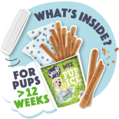 l contenuto della confezione consente di preparare circa 10 snack per cuccioli a partire da 12 settimane di età.
